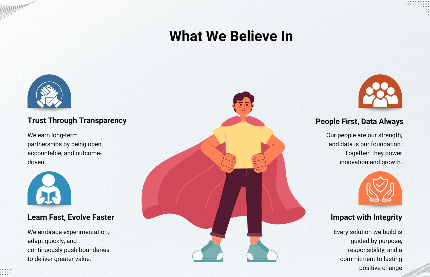 Our journey began with a simple belief – data is the most powerful asset when put in the right hands with the right intelligence. Today, we partner with enterprises, governments, and fast-scaling startups to design and deliver solutions that drive measurable business value, environmental insights, and customer-centric innovation.